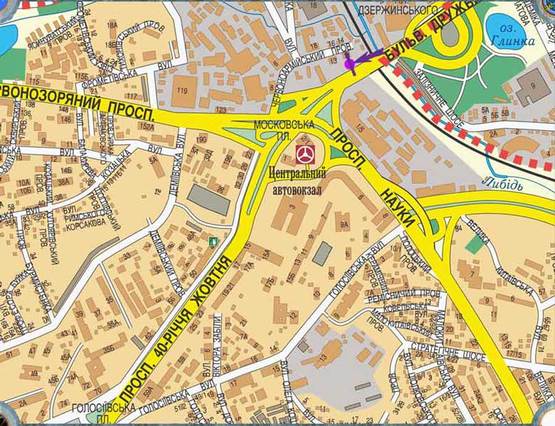 - Адрес: бульв. Дружби Народів, Центральний Автовокзал, у напрямку Московської пл.