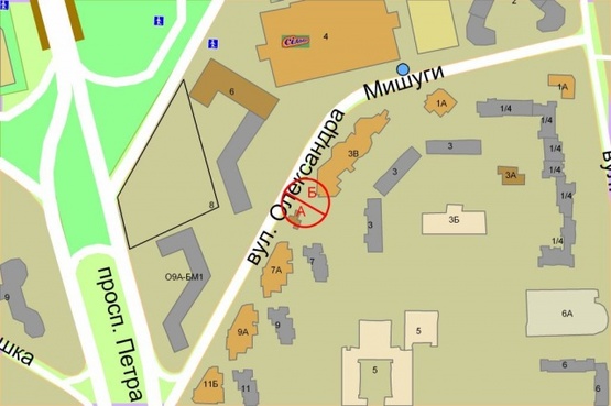 Схема рекламной плоскости по адресу Мишуги, 3Б к ТЦ"Пирамида"