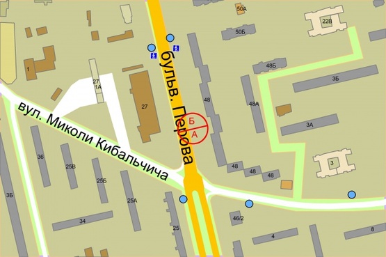 Схема рекламной плоскости по адресу Перова бульвар, 48 ( 80 метрів до перехрестя з вул. Кибальчича Миколи, рух від Троещини, ліворуч)