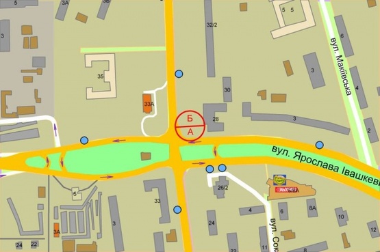 Маршала Малиновського, 8 / Добринінська, (світлофор), зупинка "Пожежне депо" А \ Есть 17000
