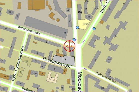 Схема рекламной плоскости по адресу уз. Кловський узвіз біля будинку №30 по вул. Московській