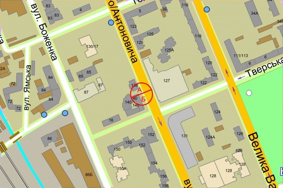 Схема рекламной плоскости по адресу Антоновича (Горького), 140,  за 40 метрів до перехрестя з вул. Тверська (світлофор)
