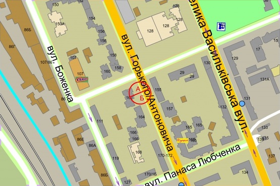 - Адрес: Антоновича (Горького), 162 / Ковпака (світлофор)