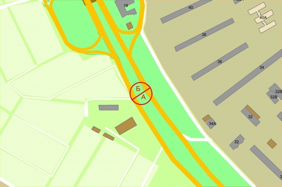 Схема рекламной плоскости по адресу Кільцева дорога, розподілювач / напроти буд. №36 по вул.Зодчих, по ходу до Жулянського шляхопроводу