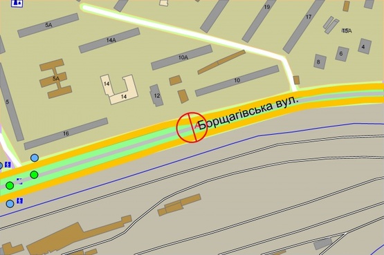 Схема рекламной плоскости по адресу Борщагівська, 10 (рухаючись із центру міста)