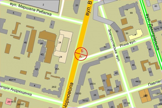 Схема рекламной плоскости по адресу Чорновола В'ячеслава, 27 / Річна (за 100 метрів до перехрестя з вул.Рибалка)