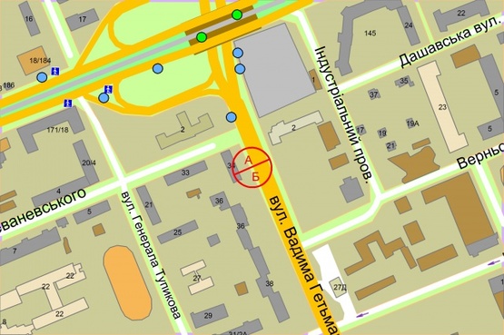 - Адрес: Гетьмана Вадима (Индустриальная), 32 , після 150 метрів за рухом від Індустріального мосту