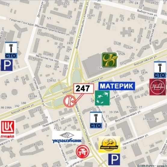 - Адрес: Гетьмана Вадима ул. - Борщаговская ул. (Индустриальный мост, "Бабай Паб", ТРЦ "Аркадия") в направ. прос. Победы