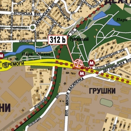 - Адрес: Победы просп. (ст. м. Берестейская,АЗС "ТНК" , KIA motors, Музей мастерская, УкрСибБанк), направ. в центр города
