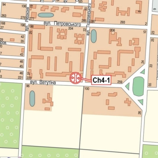- Адрес: Сагайдачного Гетьмана ул. (Ватутина ул), 168 (продуктовые магазины, АЗС "УркНафта", СШ №13), в направл. ул. Пацаева