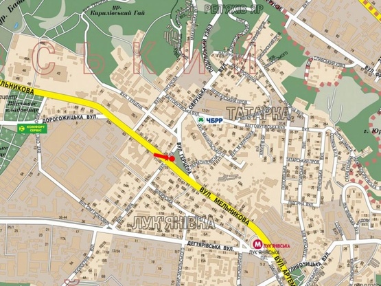 Фото рекламной плоскости по адресу Мельникова ул. / ул. Якира, светофор, в сторону ст. м. "Лукьяновская", в центр