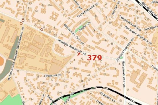 Схема рекламной плоскости по адресу Анатолія Живова вул. - Оболоня вул.