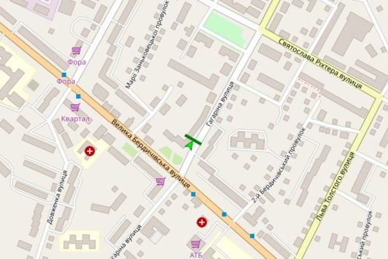 - Адрес: Гагаріна вул., 24 - Велика Бердичівська вул.