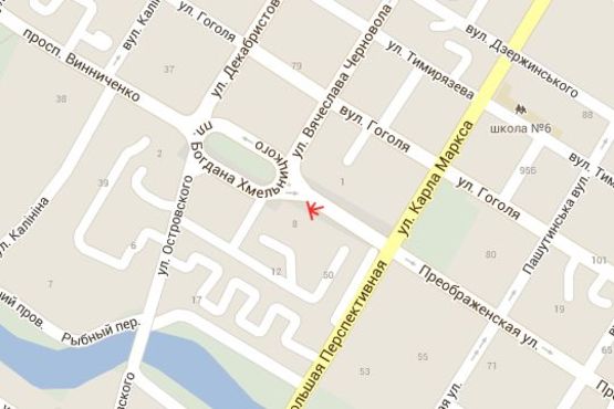 - Адрес: Преображенська вул., 4 - Богдана Хмельницького пл.