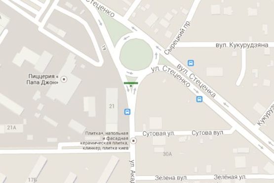 Схема рекламной плоскости по адресу Академіка Туполєва вул. - Стеценка вул., ; на розподільчому трикутнику (в напр. Академіка Палладіна просп. )