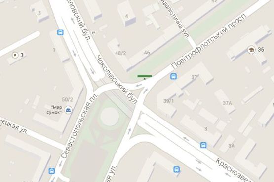 Схема рекламной плоскости по адресу Севастопольська пл. - Повітрофлотський просп., 48/2: (в напр. Індустріального моста)