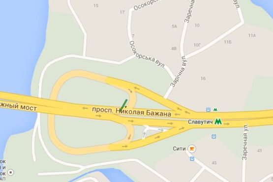 - Адрес: Миколи Бажана просп., виїзд на Південний міст (в напр. Московської пл. )