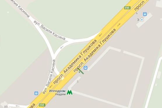 - Адрес: Академіка Глушкова просп., 5 - Василя Касіяна вул. (в напр. Московської пл.)