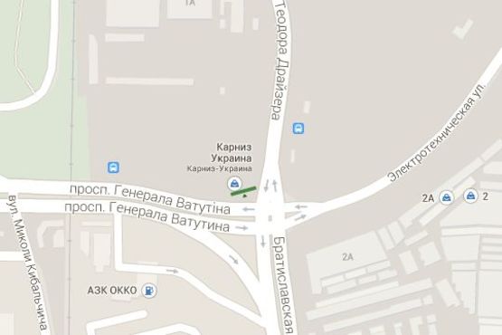 - Адрес: Шухевича Романа просп. (Генерала Ватутіна просп.) - Теодора Драйзера вул. (навпроти ринку Троєщина: площина зліва)