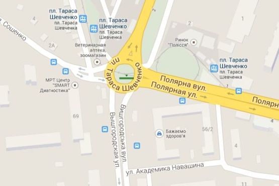 Билборд в г. Киев на Тараса Шевченка пл. - Вишгородська вул., : на розподільчій клумбі (в напр. Вишгородської вул.)