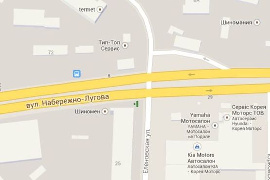 - Адрес: Набережно-Лугова вул., 25 :автосалон (в напр. Набережно-Хрещатицької вул.)