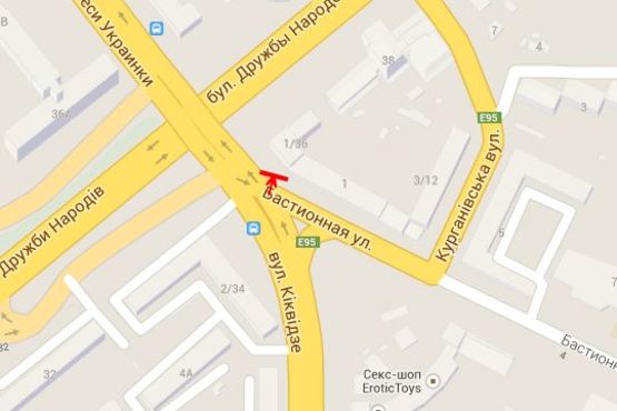 Скролл в г. Киев на Кіквідзе вул. - Бастіонна вул., 1/36 - початок бульв. Лесі Українки (№1)