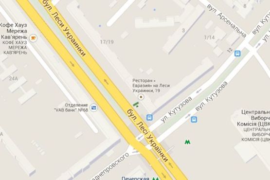- Адрес: Лесі Українки бульв., 17-19 (ресторан "Євразія", дитячий магазин "Антошка");_зупинка громадського транспорту