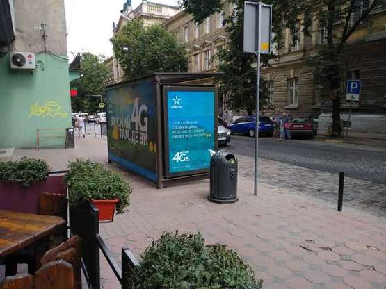 Реклама на остановке в г. Львов на Князя Романа вул., 26