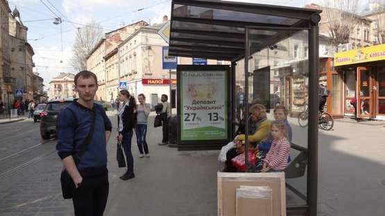 Реклама на остановке в г. Львов на Богдана Хмельницького вул. - Старий Ринок пл.
