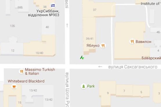 - Адрес: Саксаганського вул., №39/41 - Шота Руставелі вул. (№3 в напр.Червоноармійської)
