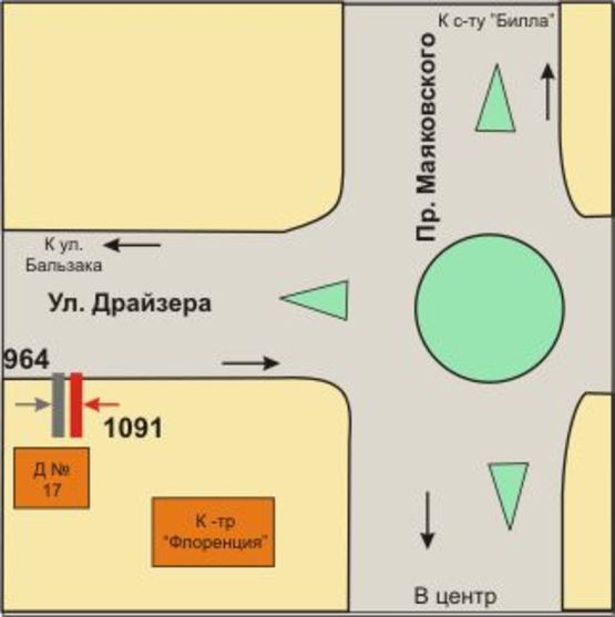 Схема рекламной плоскости по адресу Драйзера Теодора вул., 17-А (в напр. Бальзака Оноре де вул.)