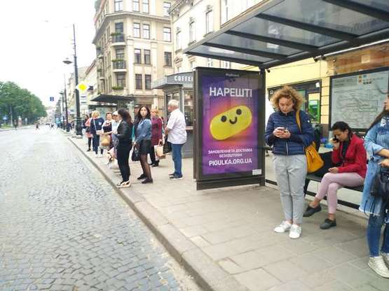 Реклама на остановке в г. Львов на Свободи просп., 49 (№2)