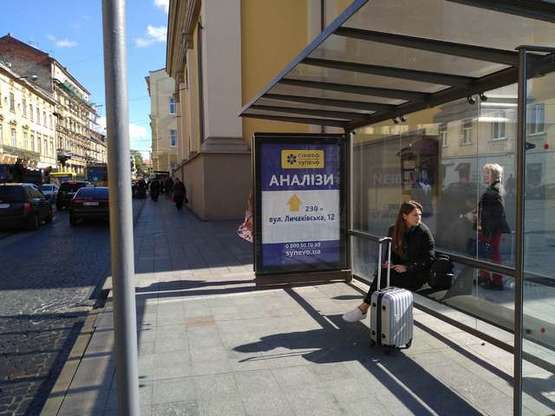 Заказать Реклама на остановке в г. Львов по адресу Митна пл. - Личаківська вул., (№1) можно позвонив менеджерам по телефонам: +38(099) 395-28-27, или через форму онлайн заявки