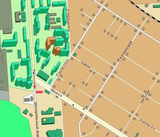 Схема рекламной плоскости по адресу ул. Гастелло - ул. Щорса, 125/4 (напротив) (Призма)