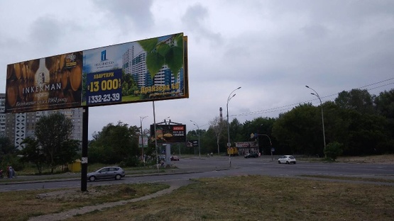 Заказать Билборд в г. Киев по адресу Григоренка пр. - ул. Здолбуновская (клумба) в сторону Дарницкого моста (правый) можно позвонив менеджерам по телефонам: +38(099) 395-28-27, или через форму онлайн заявки