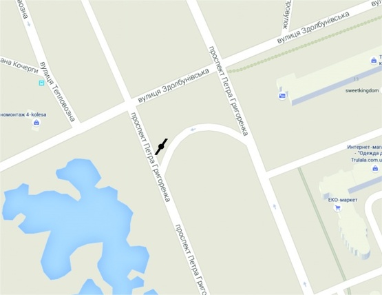 - Адрес: Григоренка пр. - ул. Здолбуновская (клумба) в сторону Дарницкого моста (правый)