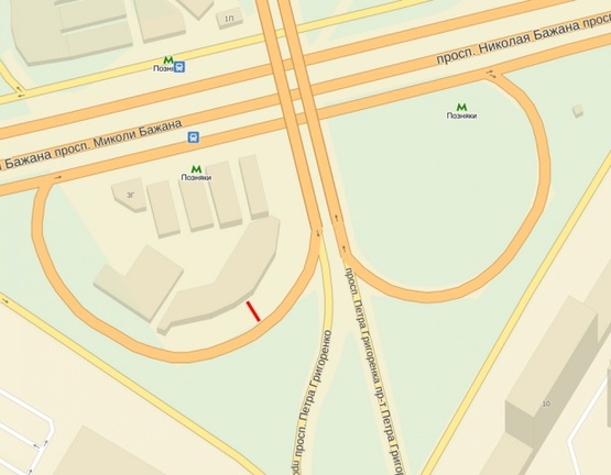 Схема рекламной плоскости по адресу Григоренко, съезд на пр-т Бажана (БИЛЛА, ТЦ Алладин, ст.м. Позняки)