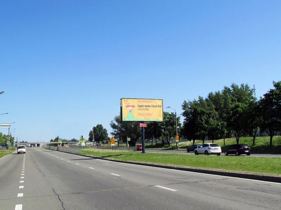 Билборд в г. Киев на Ул. Богатырская, напротив дома №11. РАЗДЕЛИТЕЛЬ. На светофоре. 100 м до АЗС WOG, Докер паб, ЭПИЦЕНТР. Выезд из Киева