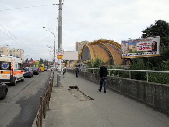 Соборности пр. (бывш. Воссоединения пр.) / Березняковская ул., мост, перед АЗС "Окко", в сторону Дарницкая пл. (бывш. Ленинградская пл.) А \ Есть 19400