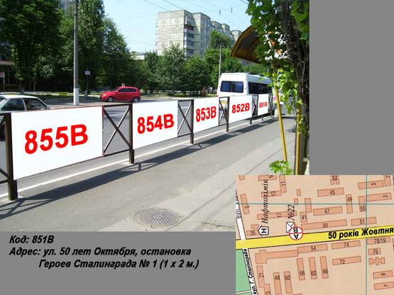 Фото рекламной плоскости по адресу пр. Леси Украинки (ул. 50 лет Октября), остановка Героев Украины № 1 (1 х 2 м.)