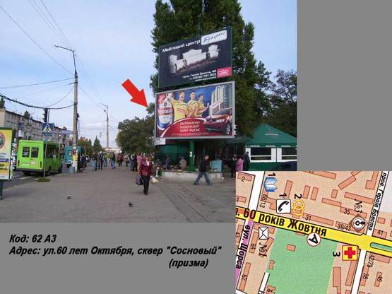 Заказать Билборд в г. Кременчуг по адресу ул.60 лет Октября, сквер "Сосновый" (призма) можно позвонив менеджерам по телефонам: +38(099) 395-28-27, или через форму онлайн заявки