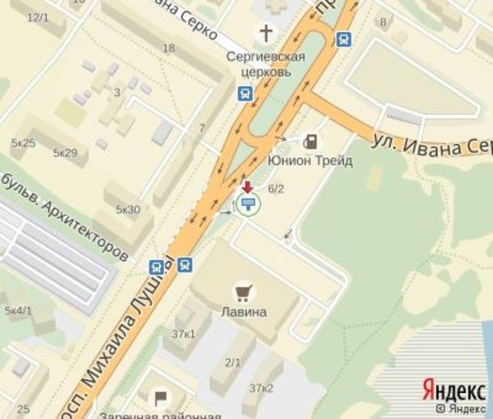 - Адрес: Лушпы пр., 6-2 (перед входом в ТЦ "Лавина",Сильпо","Эльдорадо", АЗС)