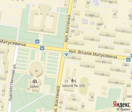Схема рекламной плоскости по адресу Матусевича ул., 12 - Костенко ул., (ПриватБанк, КТУ, цирк), напраление к Гагарина пр.