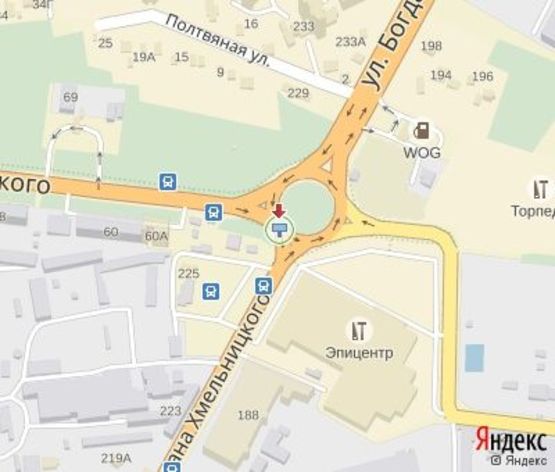Схема рекламной плоскости по адресу Хмельницкого ул., ( поворот на АС №2) "Эпицентр К"