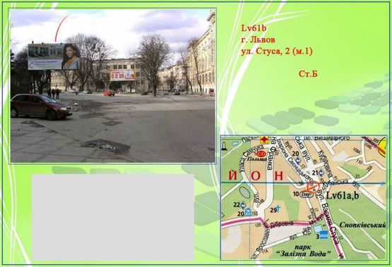 Заказать Билборд в г. Львов по адресу Стуса ул., 2 можно позвонив менеджерам по телефонам: +38(099) 395-28-27, или через форму онлайн заявки