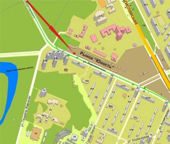 Схема рекламной плоскости по адресу ул.Миропольская (рынок Юность)