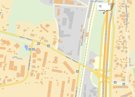 Схема рекламной плоскости по адресу Столичное шоссе 07 - развязка с пр. Науки; направление из центра в сторону "Домосферы", Центрального авторынка (просп. Заболотного), Конча-Заспы