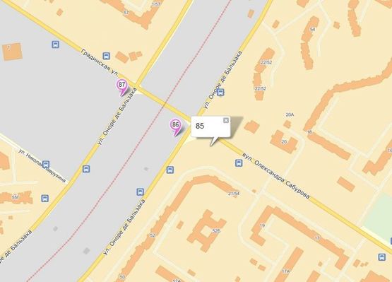 - Адрес: ул. Бальзака / ул. Сабурова 01 - светофор, трасп. развязка в напр. к пр. Маяковского, на авт. остановке