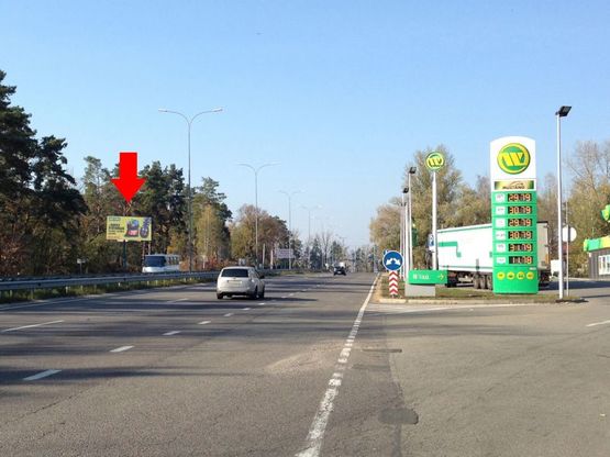 Билборд в г. Трассы на ул. Богатирская, Киев, Р-69, 2750 м от черты города (трасса в сторону Межигорья, зоопарк "12 месяцев" напротив заправки WOG) / выезд из Киева (Оболонь)