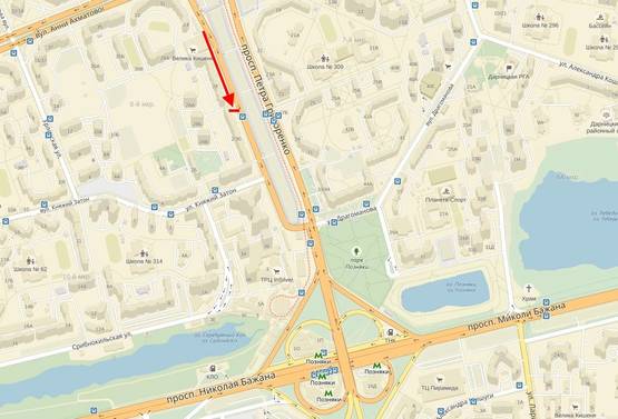 Набережне шосе, біля з'їзду з мосту Патона (в напр. Выдубичей) Б \ Нет уточняйте цену